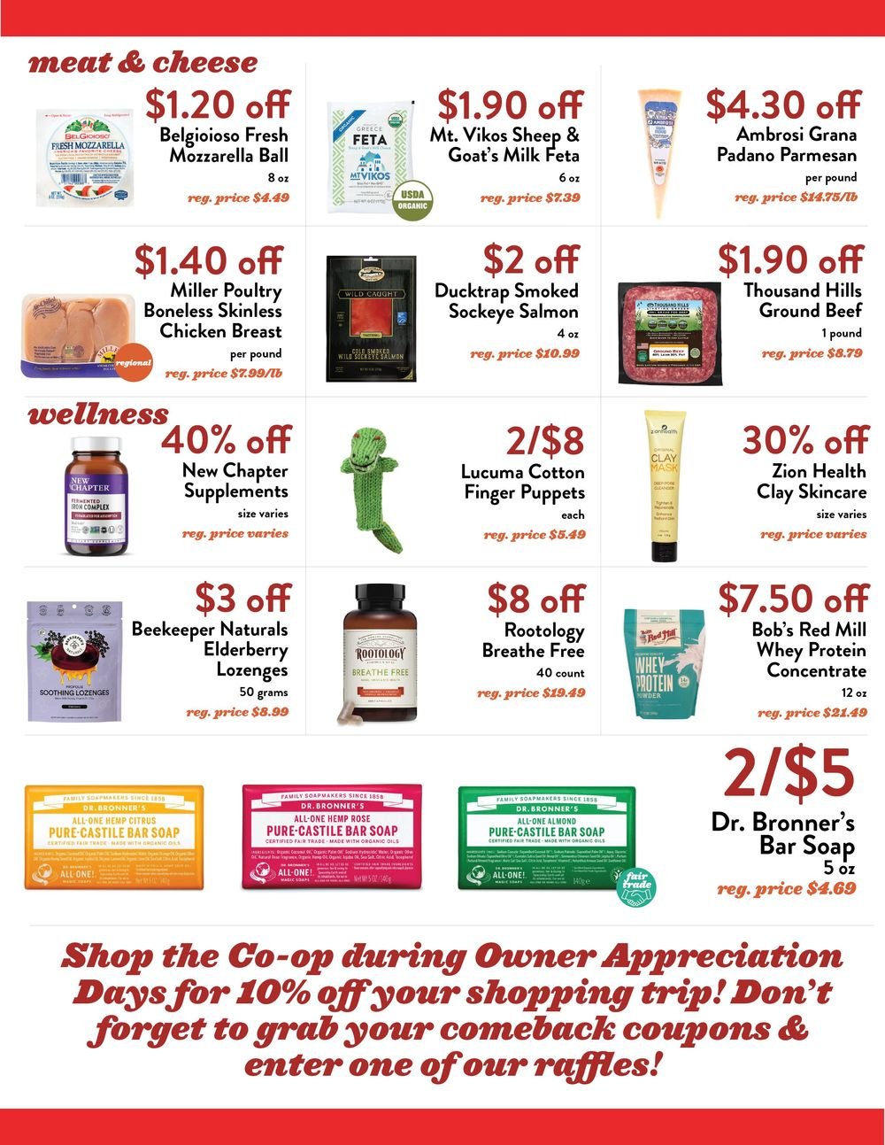 Because our Food Co-op is community-owned by over 12,000 neighbors and counting, Owner Appreciation Days are our special sales celebration where all of our Co-op owners can get great store-wide deals! Owner Appreciation Days is a full 7 days (Wednesday, September 11th - Tuesday, September 17th) to encourage safe shopping, reduce crowds, and allow customers to maintain their regular shopping schedule. We're stocking up on all these great deals, so there will be enough for everyone! Like all Owner Days, owners will receive a 10% discount off their entire purchase of one shopping trip of their choice (excluding Co+op Basics, alcohol, and items already on sale).