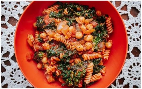 Fusilli with Chickpeas & Kale in Tomato Sauce