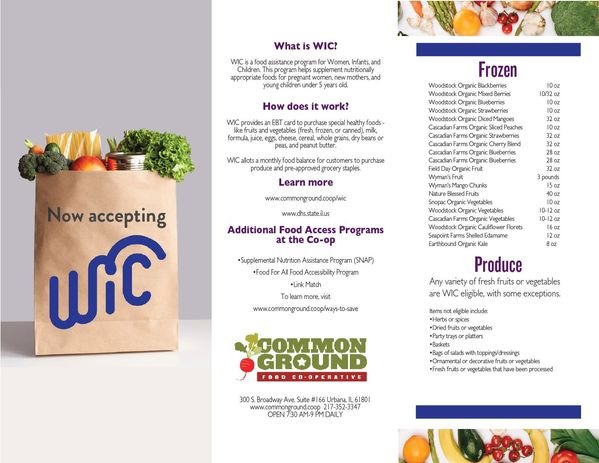Common Ground Food Co-op is now an Authorized WIC Vendor and can accept WIC, also known as the Special Supplemental Nutrition Program for Women, Infants, and Children.